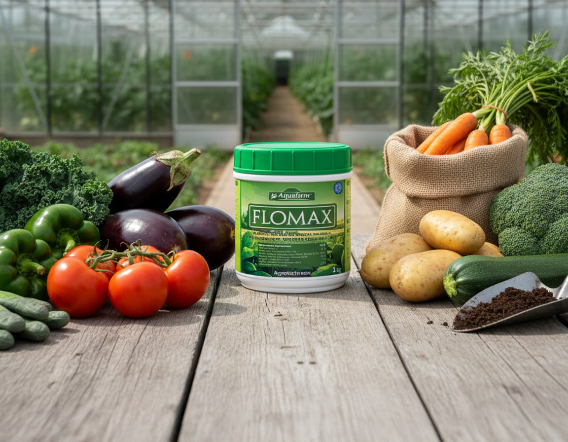biochemical reactions that harmonize the plant physiology. Plants have tendency for incorrect nutrition when under stress. At this point FLOMAX can be applied to organize the plant physiology in a matter of days and correct impregnations and thus stops LOSS OF YIELD.